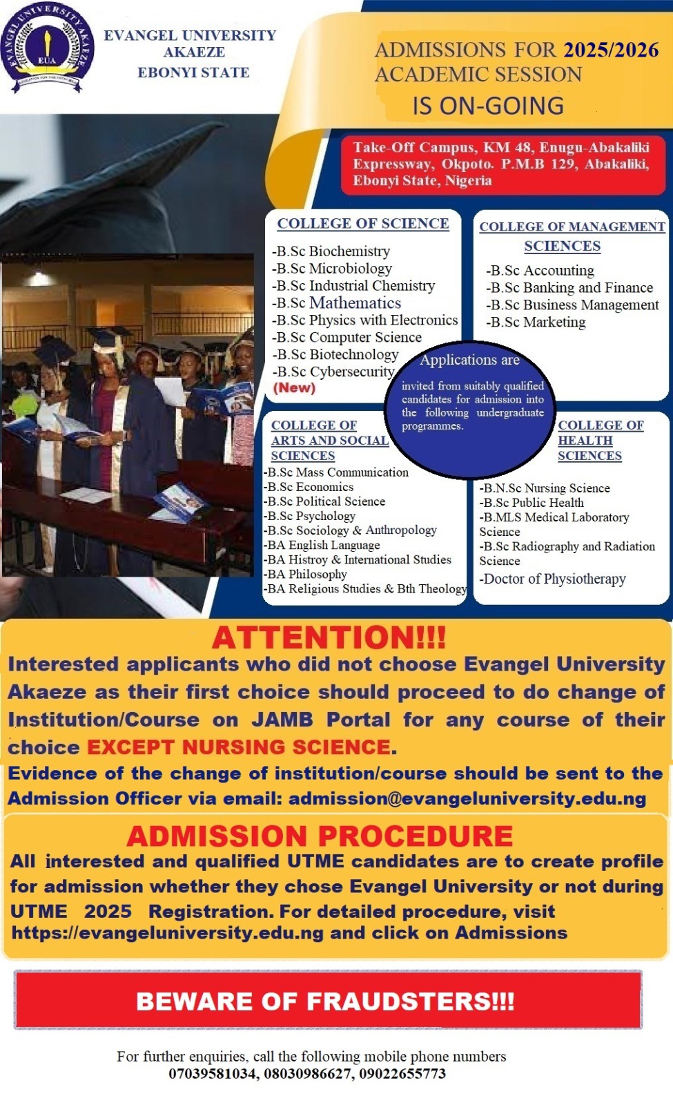 Admissions for 2025/2026 Academic Session is On-Going